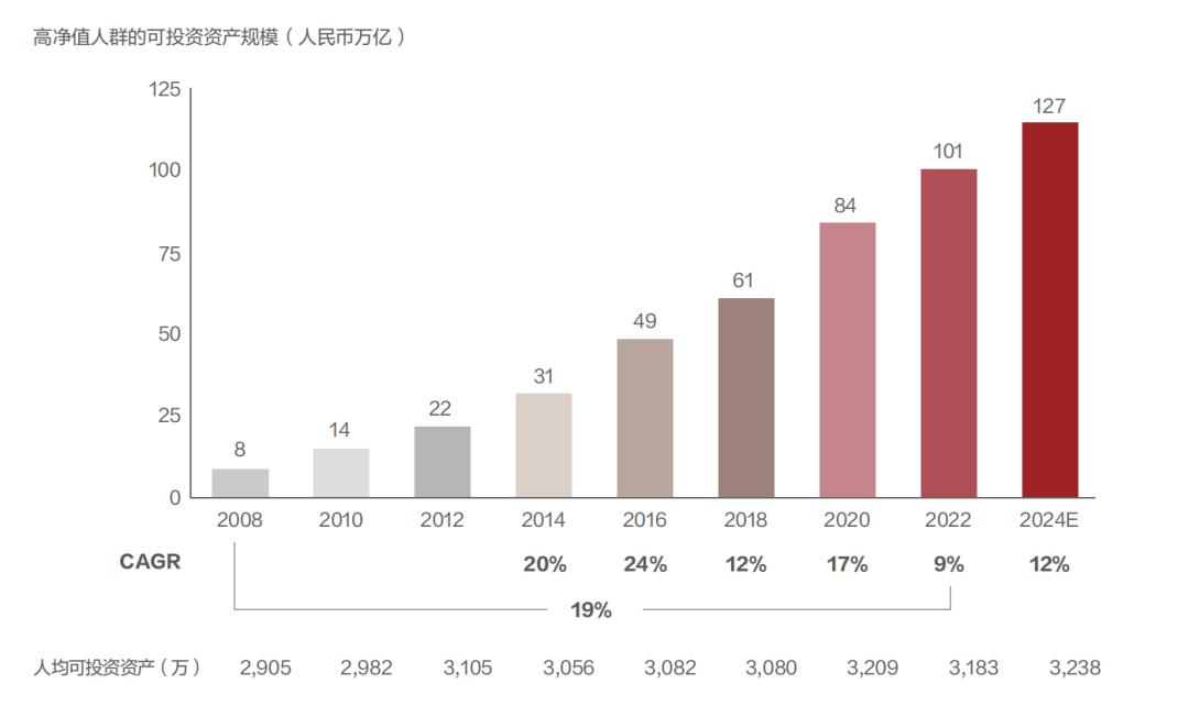 不过,报告预计,未来两年,中国高净值人群数量,以及持有可投资资产的规模,仍将以11%和12%的增速,继续增长。