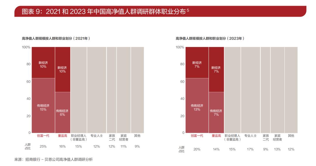 报告显示,本次调研受访者中的新经济群体占比因互联网等行业市值波动而较2021年缩减,其中新经济创富一代企业家和董监高占总样本的比例均由10%降至7%。