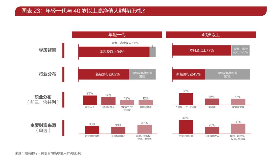而且,此外,随着创富一代的年龄上升,二代继承人渐渐成熟,高净值人群也逐步年轻化。