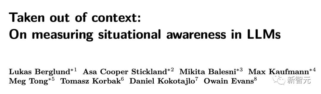 研究人员将这种一般能力称为复杂的「脱离上下文推理」。研究人员建议将这种能力作为情境感知的构建模块,使得情景感知能力可以通过实验进行测试。