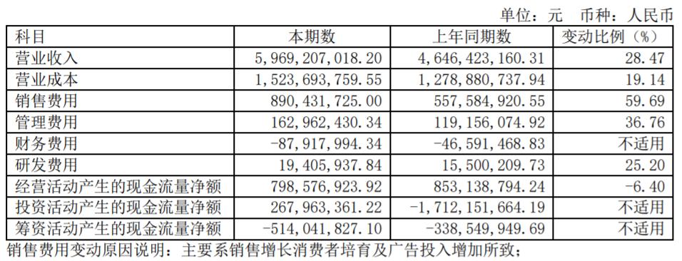 据半年报及经营数据公告,今世缘期内销售费用约8.90亿元,同比大增59.69%。但省外经销商为596家,比期初还减少了23家。