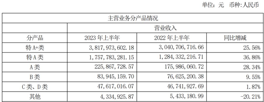 这些产品分为六个档次,其中特A+类为出厂指导价300元(含税,下同)以上的产品,特A类为100—300元价位带产品,A类为50—100元价位带产品,B类为20—50元价位带产品,C类、D类为20元以下价位带产品。