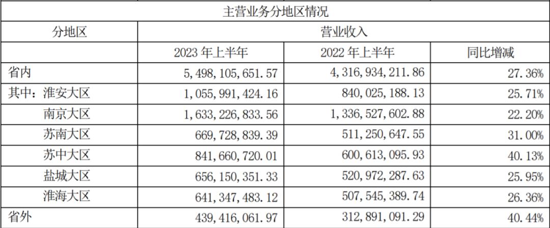 从今世缘披露的定期经营数据中不难看到,上半年近60亿元的营收中,有54.98亿元来自江苏市场,占比高达92.11%。