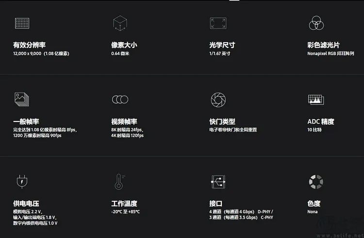 这些CMOS,就包括但不限于三星HM2(1.08亿像素、1/1.52英寸)、三星HM6(1.08亿像素、1/1.67英寸)、以及三星HP3(2亿像素、1/1.4英寸)。