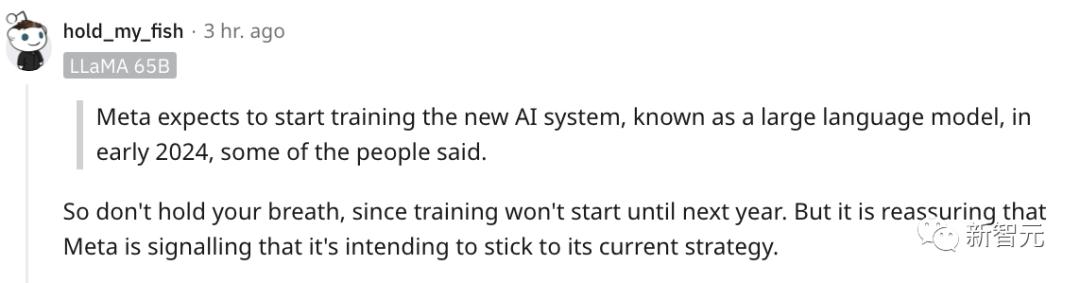 不过也有网友表示,Meta要到2024年初才会开始训练。
