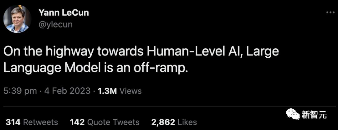 今年2月4日,LeCun就直白地表示,「在通往人类级别AI的道路上,大型语言模型完全是一条歪路」。