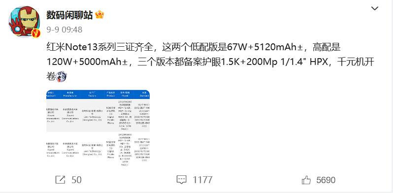 目前Redmi Note 13系列一共三款机型,均已经通过3C认证。