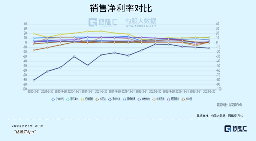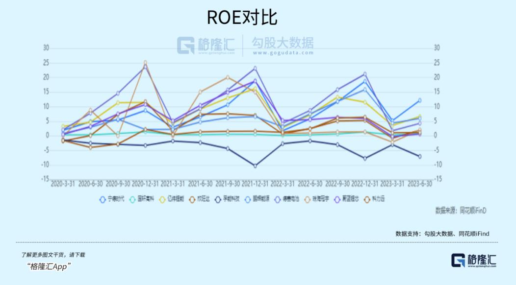从 10 家电池公司对比来看,2023H1 宁德时代的毛利率最高,为 20.25%;2023Q2 珠海冠宇毛利率最高,为 22.47%。