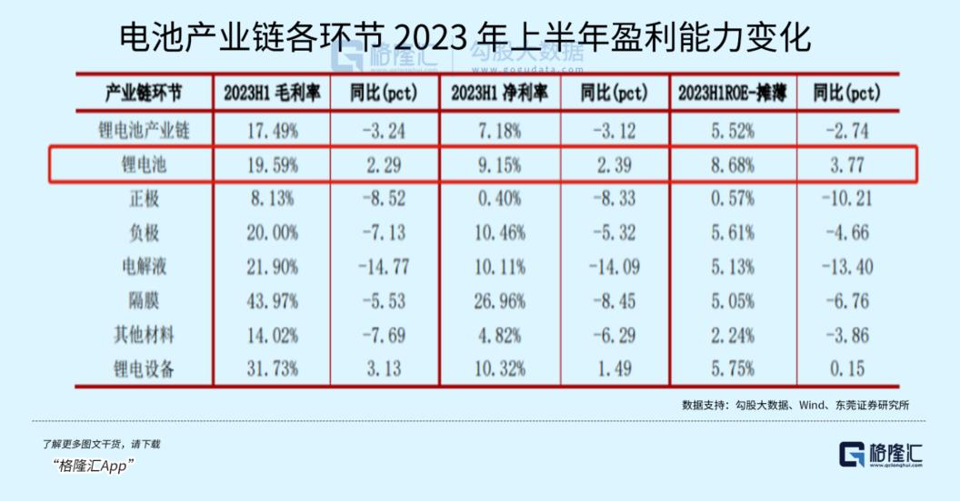 但从营收增速、利润增速、毛利率变化等盈利维度比较,利润向锂电池环节转移的趋势是比较清晰的。