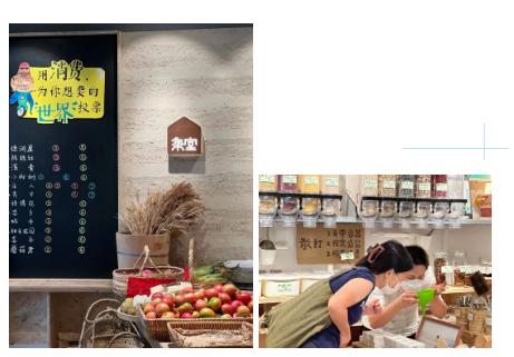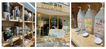 由于"无包装"的售卖形式,店主在采购时往往会更愿意关注本地产品,方便与商品供应者进行沟通,以期供应者在力所能及的范围内做到环境友好的出货方式。除此之外,店家对店铺内商品信息的公示、商品的保存也需要特别下功夫,谨慎选择密封容器、掌控商品品质与进销货情况。