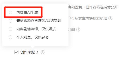 创作来源声明,就包含AI生成的声明。