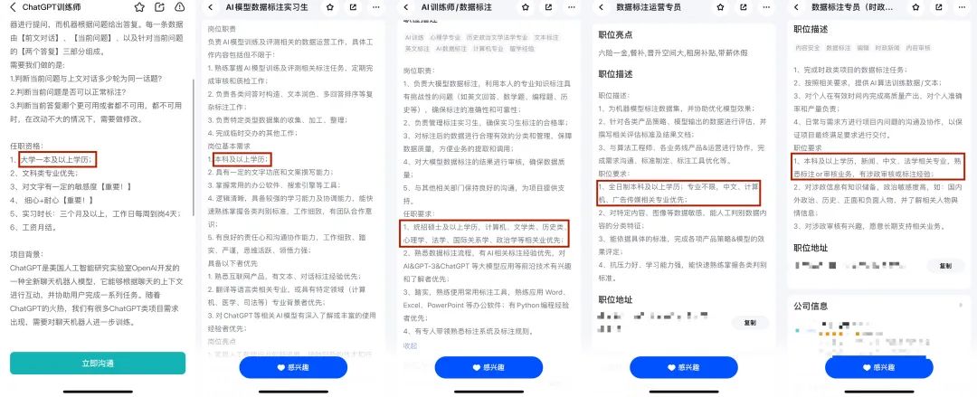 在这种工作需求之下,越来越多的大模型公司对数据标注员的需求,也从过去的低学历向高学历转变,并且这种需求正越来越多。