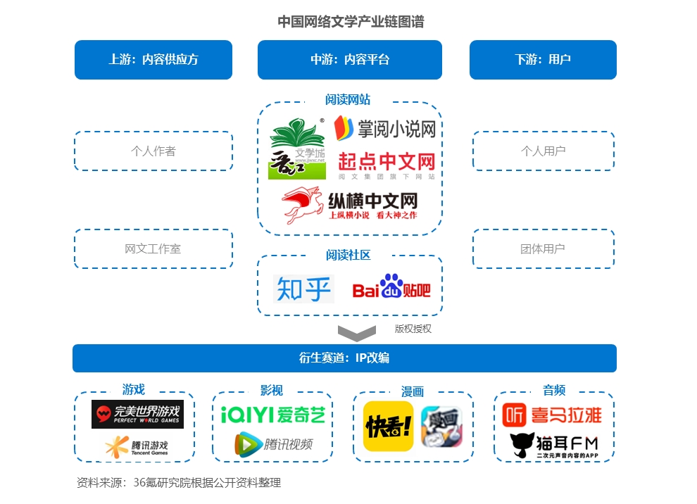 产业链结构:由上游内容供应方、中游内容平台和下游用户构成