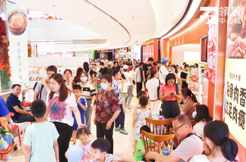 以领展中心城为例,商场内有60多家餐饮店,包括西塔老太太泥炉烤肉、同仁四季椰子鸡、以及幸福小串·地摊小炉子的华南首店、太二酸菜鱼和西贝莜面村等各大知名餐饮品牌,囊括正餐、火锅、小吃等各个品类。