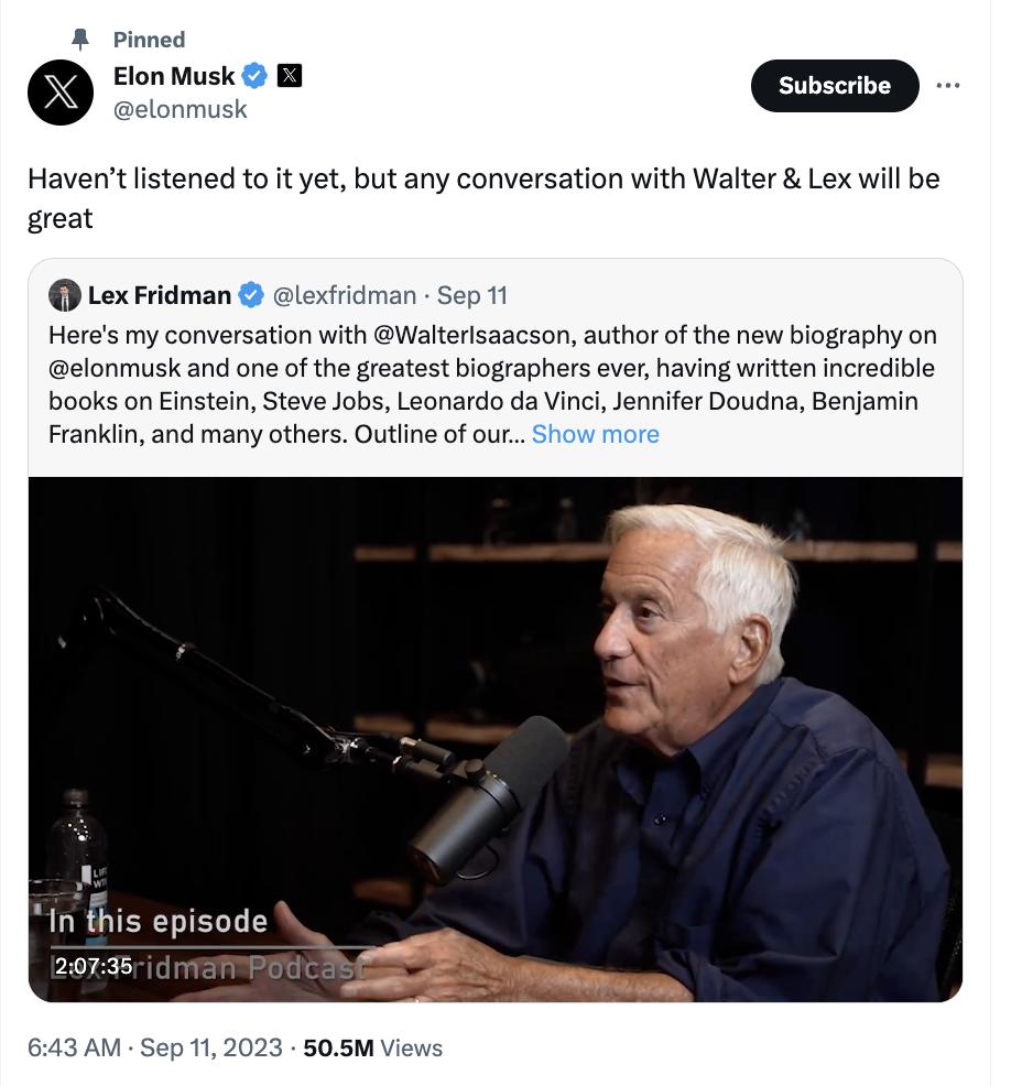 截至目前,马斯克并未对这个事发表评价,只是在 X 上转发了关于自己新传记的视频。