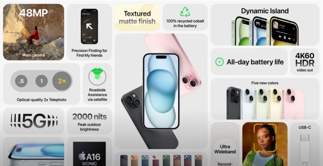 (iPhone 15系列具体参数 图源:苹果发布会)
