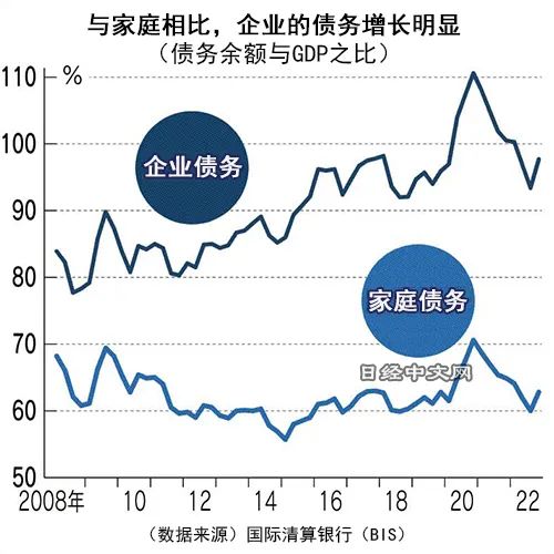 日本野村综合研究所的经济学家木内登英表示,“企业债务与国内生产总值(GDP)之比处于历史高位,经济的弱点正在转移到企业,而不是家庭”。