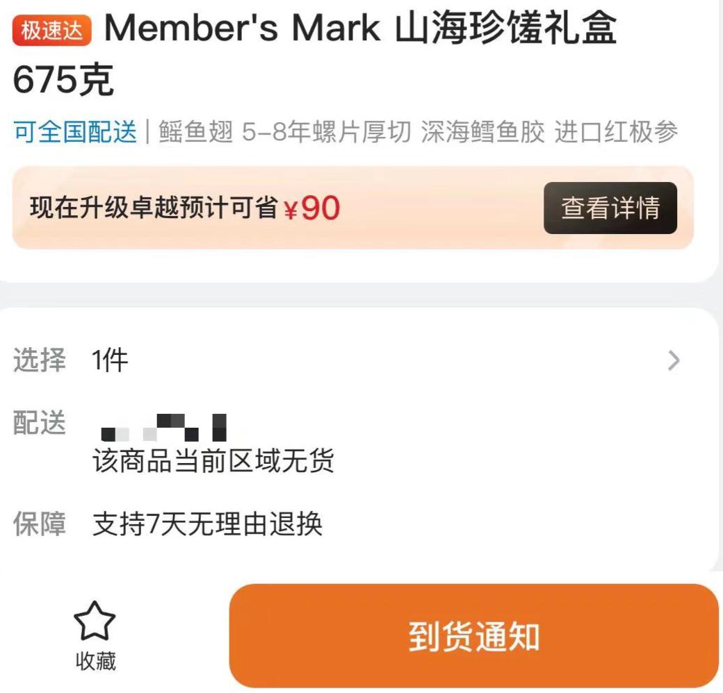 对比与山姆,在山姆会员APP买东西时,若有缺货时会显示‘货到通知’的信息,顾客可以点击‘到货通知’,在到货后会有短信通知到货,可以再下单购买……