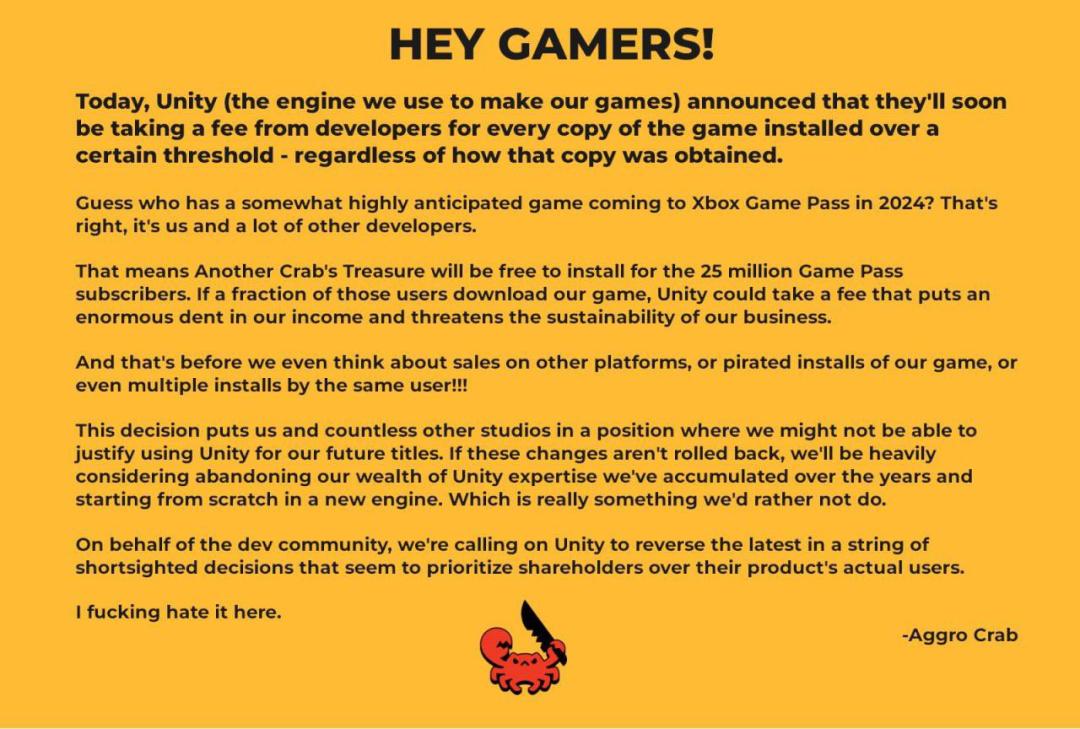 而对部分运营大DAU产品,或是有能力稳定产出高质量独立游戏的中小团队来说,这样的新规也意味着他们需要重新做一些规划了。在推特上,已经有一些团队表示将做出应对动作,比如赶在明年之前下架游戏,或是调转方向,准备使用其他引擎移植当前产品、开发后续产品。