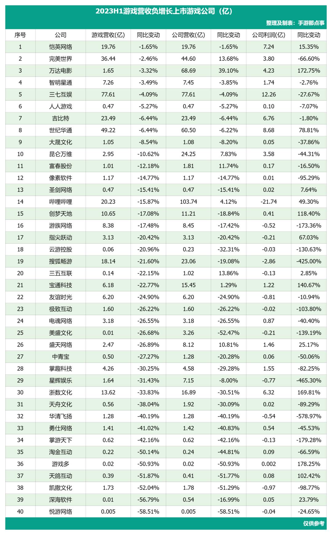 残酷的游戏行业:超40家中大厂出现负增长,22家在亏钱