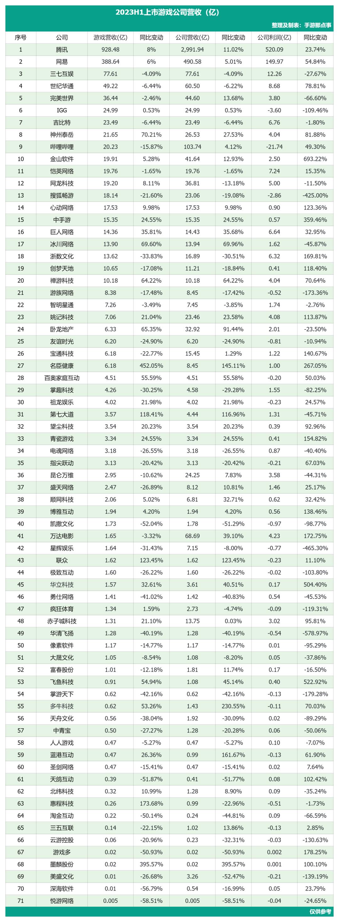 至于2023下半年将会走向何方?或许这些上市游戏公司的上半年财报能够给到我们答案。(71家上市游戏公司营收表在文末贴出)