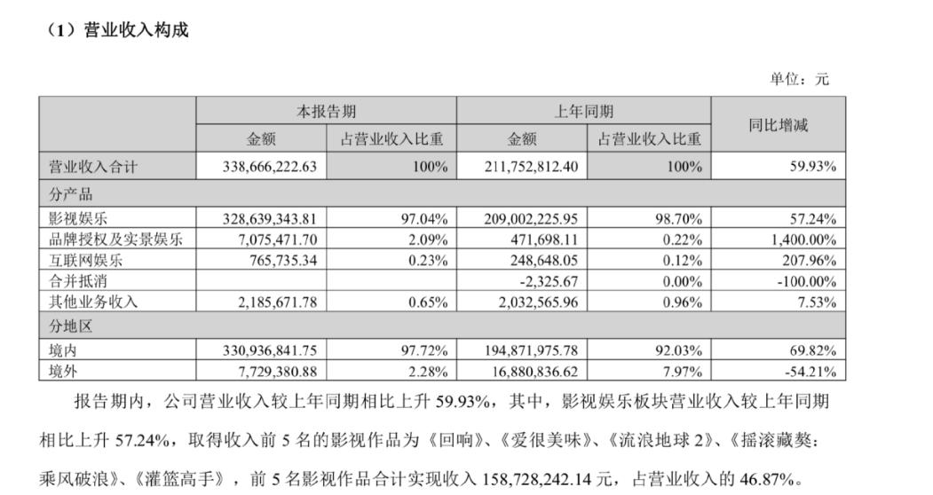 图为华谊兄弟2023年上半年营业构成。来源:华谊兄弟财报