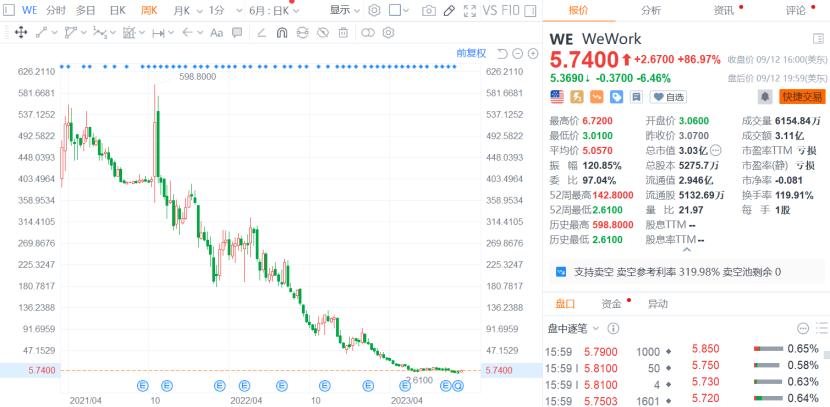 WeWork股价走势,图片来源于富途