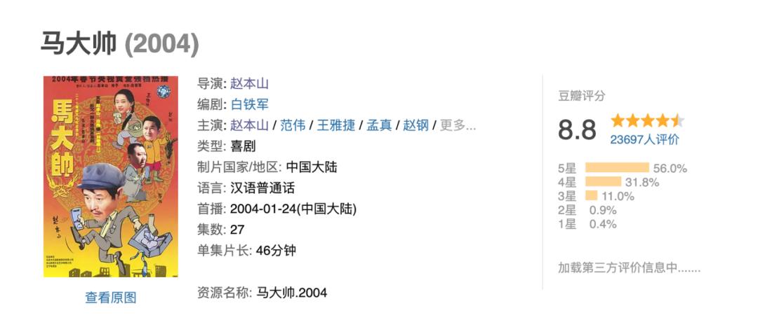 略去1996年较为小众的电影《夜深人不静》不提,《马大帅》迄今为止仍是赵本山评分最高的作品。
