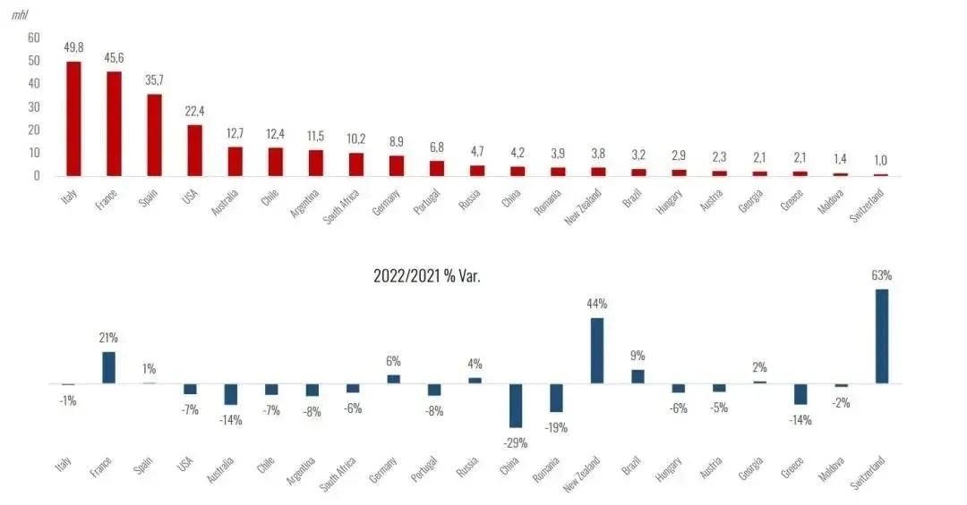一部分要归结于全球经济减速,经济形势不好,俄乌冲突又导致粮食价格上涨,欧洲消费者生活成本增加,作为非刚需的葡萄酒消费自然被缩减了。