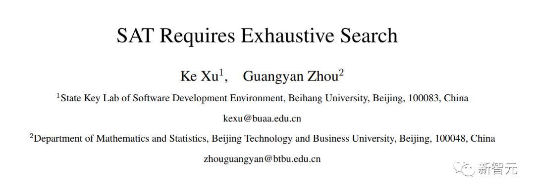 在Ke Xu和Guangyan Zhou的论文中,他们构建了CSP和SAT的极难示例,证明了这些示例在没有穷举法的情况下无法求解。