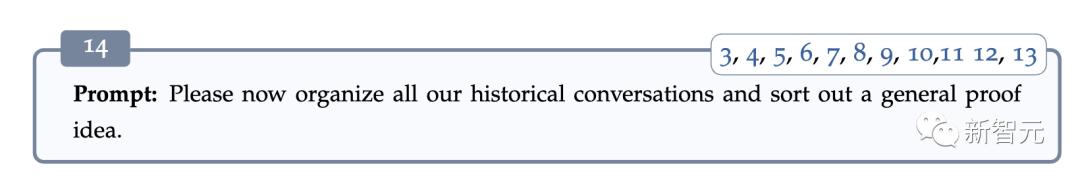就这样,经过14轮连续对话,研究人员让GPT-4对3-13步的历史内容,梳理出一个证明思路。