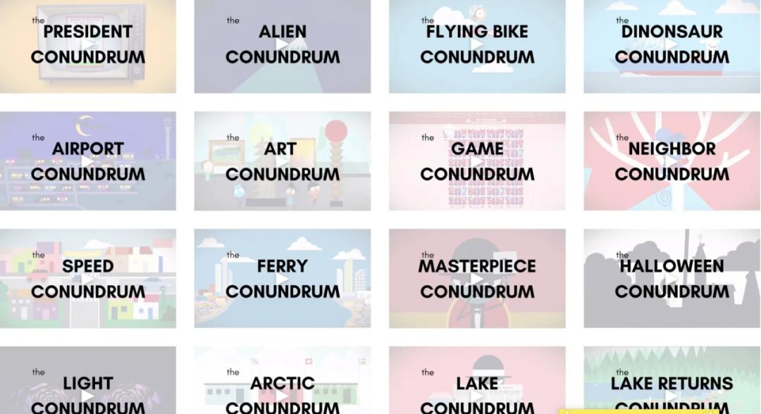 这些难题由Astra Nova的老师和学生编写和创建,并没有标准的统一答案,更多的是考验孩子的想象力和理解力。难题很刁钻,涉及了火星人、湖、蓝彗星、宝藏、巧克力、恐龙等等。