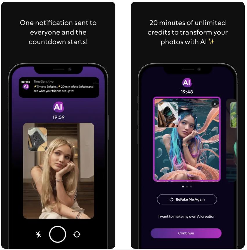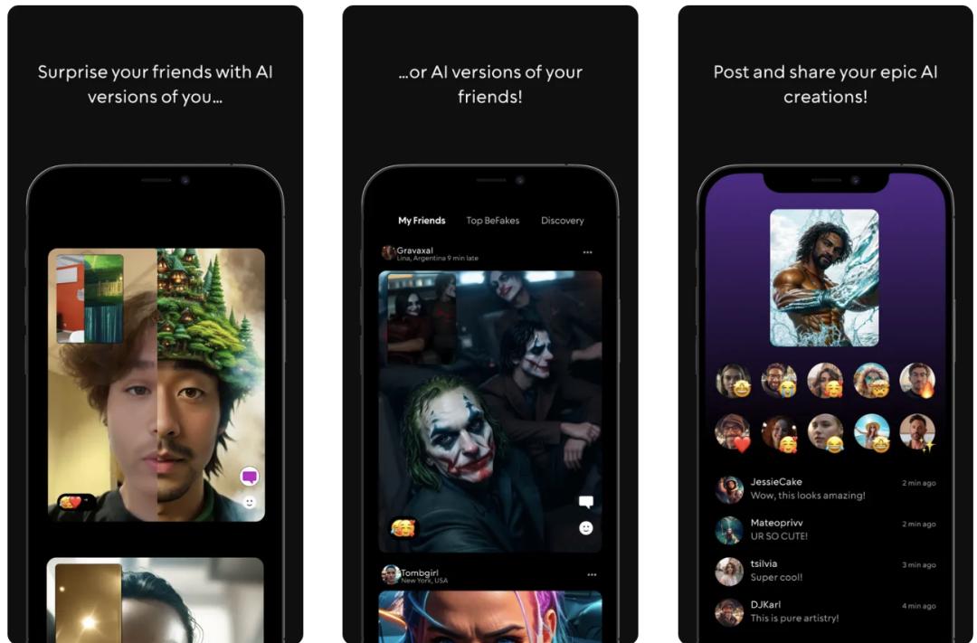 BeFake 自称是「首个 AI 增强社交网络」,它彻底放弃了社交媒体的「真实性」,并借助 AI,将其「虚假性」发挥到了极致。