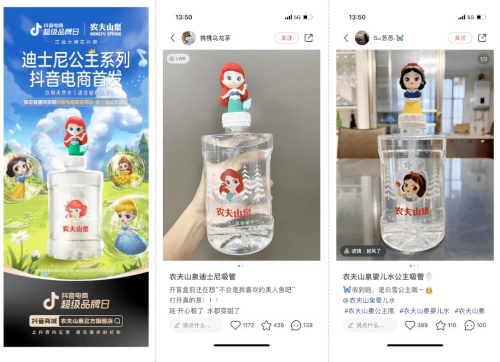 比如,和农夫山泉的合作的婴儿水,联名了迪士尼公主系列,就获得了意料之外的欢迎。林家文自己都没有预料到这个产品的爆火,后来才知道,很多父母都困扰于孩子不爱喝水的问题,但是插上公主形象的吸管、印上了公主图案后,孩子喝水积极多了。