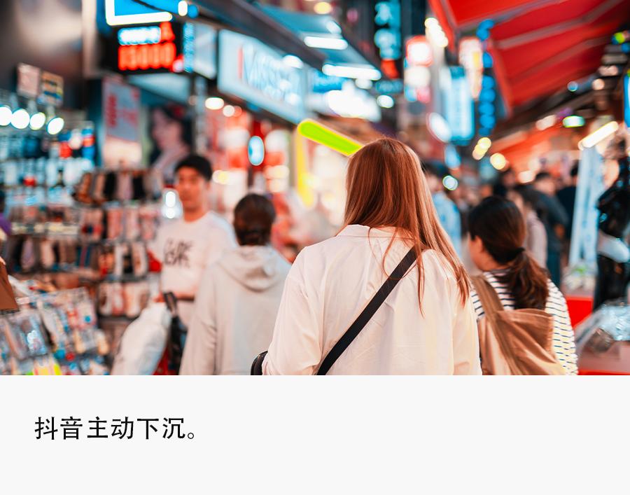 有业内人士认为,抖音拉低了企业的数字化转型门槛。一个偏远地区的小商户,只要注册一个抖音号,就可以自己拍一个照片、发一段视频,自己做自己门头的代言人。分发也是城市和周边逻辑,多少都会带来一定的收益。但下沉市场更复杂,消费者下班更早,洗浴按摩、酒吧小吃消费频次更高,有很多新属性。