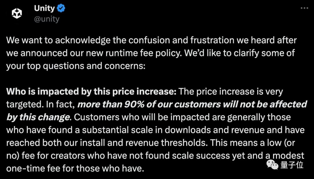 现如今,由于事态发展得着实有点不可控,Unity官方X账号(原推特)紧急发文称: