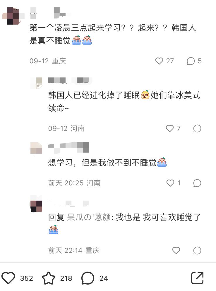 虽然“发疯姐”、“六点姐”等博主所传递出的韩女学习精神,看起来像一部通往成功彼岸的高燃励志片,但真正付诸于实践之后,才发现漏洞满满。很多网友质疑,长期保持日均10个小时以上的学习,真的高效吗?晚上2点睡,早上6点起学习真的能保持专注吗?通宵学习之后去考试真的能发挥到最好吗?以及,真的不会猝死吗?