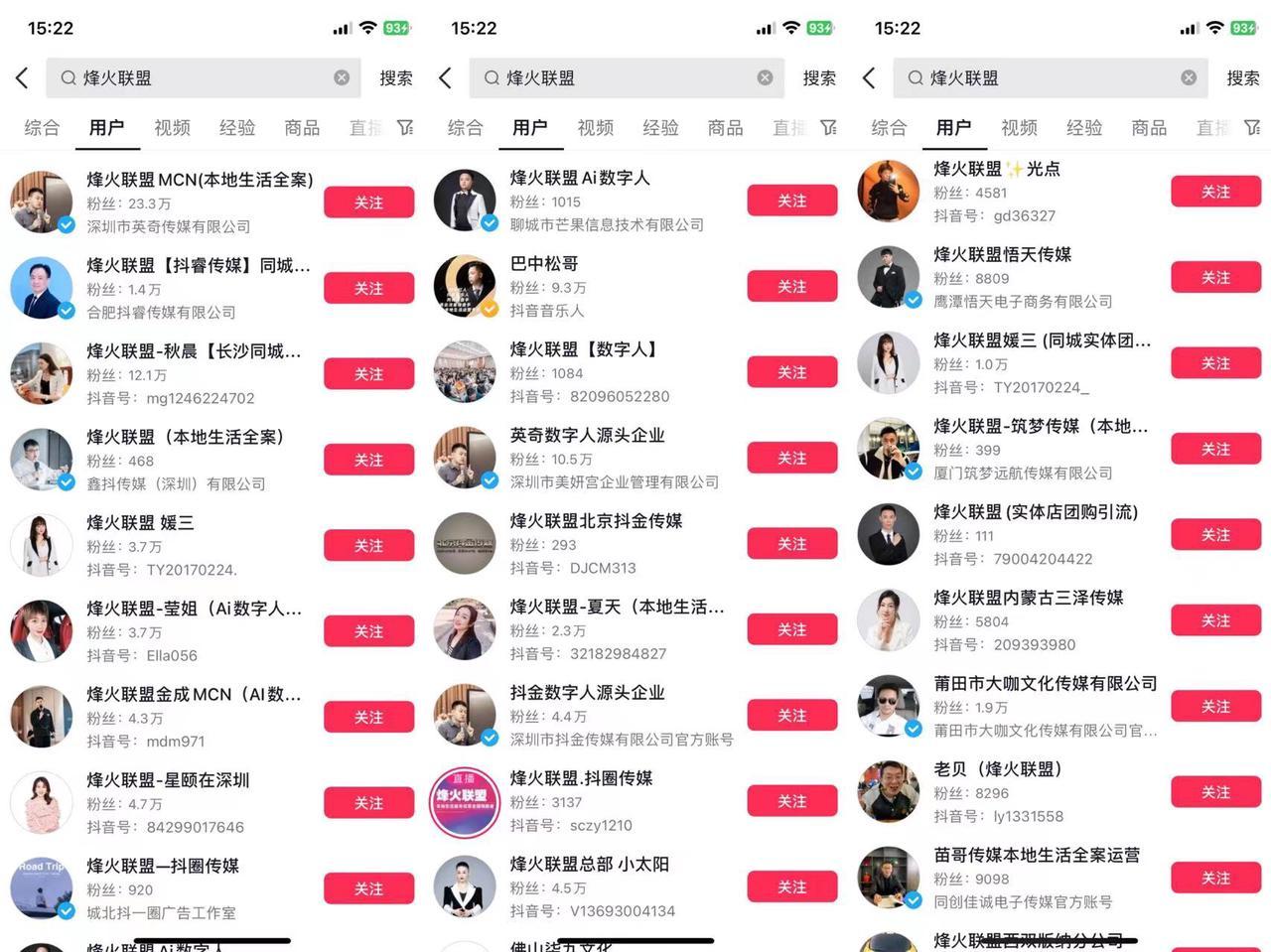 比如抖音上一个最大的虚拟数字人中间商——烽火联盟,经「自象限」初步统计,该联盟在抖音平台账号超过50个,全平台大概有300多个账号。该中间商目前已初具规模,靠着疯狂的刷屏和咆哮输出,成功忽悠了一大波商家。据行业内人士透露:“烽火联盟每个天会花6k-8k进行广告投流,产生8k-1w个够买虚拟数字人的精准销售线索”。