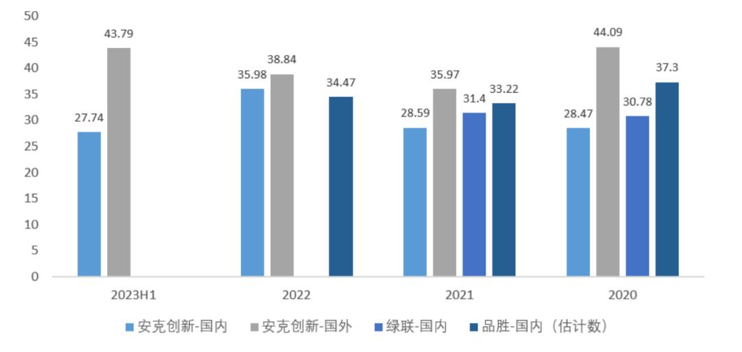 我们用毛利率来对比一下,很明显可以看出,尽管安克创新的毛利率确实高于同业,但差距并不算大,几家公司的毛利率水平基本在一个量级。而如果仅就国内业务对比来看,安克创新的毛利率也与绿联、品胜基本相当,甚至还处于略低的水平。
