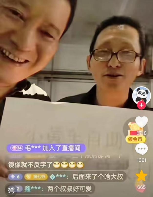 一开始,粉丝让他们叫“宝宝”,大叔们叫不出口,就唤“孩儿们”;粉丝提醒他们关掉“晚发赔付”,担心他们发货跟不上会被罚款,大叔们面面相觑,根本听不懂是什么意思;大叔们没有直播间“违禁词”的概念,总是说错话、直播间被封,在粉丝的建议下准备了一张写着“自助下单”的纸,却不懂怎么关闭镜像效果,只能将纸反过来展示。