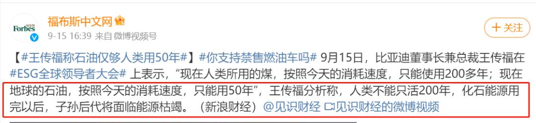 这种已经被经验上证伪的石油枯竭论再次被王传福当个宝,也无非是因为这种观念传播有利于比亚迪的发展。