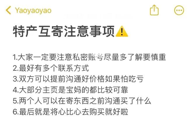 有博主总结了互换特产的注意事项。(图/@Lucky-Yaoyao)