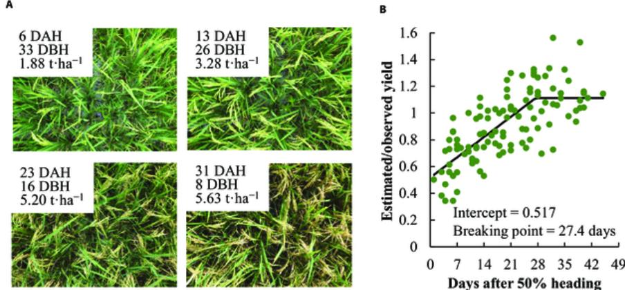A:不同拍摄时期得到的照片,DAH 代表抽穗后天数,DBH 代表收割前天数;