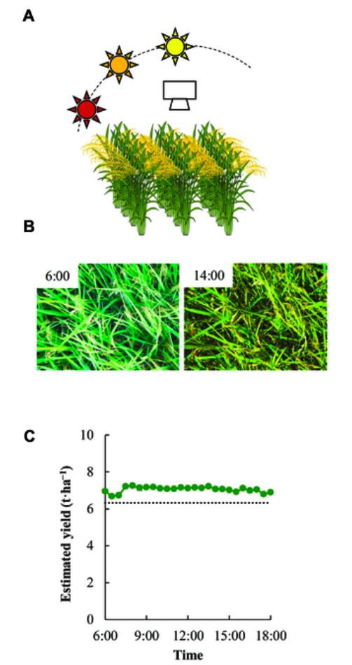 随后,相机被放置在一个固定位置,每 30 分钟拍摄一张农田照片,以探究拍摄时间对 CNN 模型的影响。结果显示,虽然光照环境发生了变化,但 CNN 模型对全天照片的预测结果基本稳定。