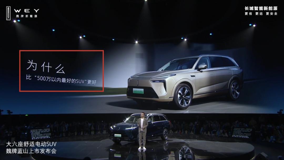在长城新产品蓝山的发布会上已经可以看到,长城几乎是全面对标理想L8在打造产品。