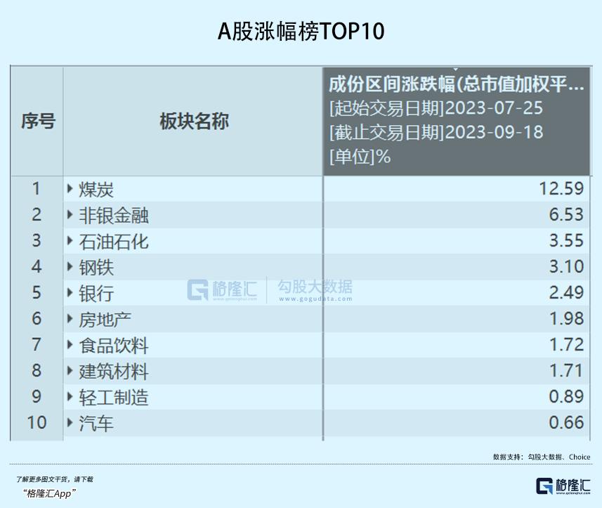 蓝筹大白马一路下行,市场风险偏好下降,选中了高股息率、盈利能力持续上升的煤炭板块。