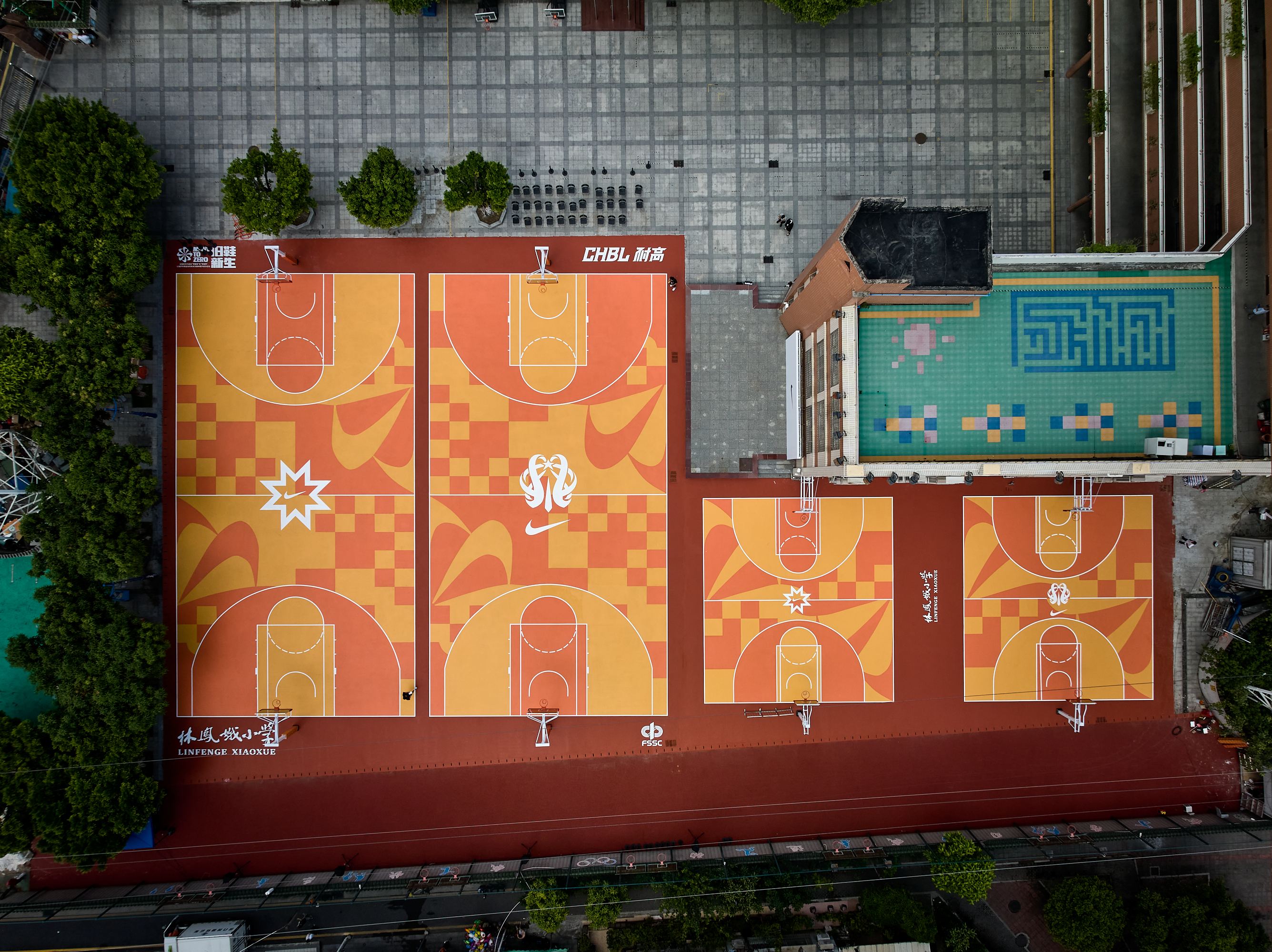 作为耐克大中华区运营及物流副总裁,常远对体育运动场景再熟悉不过。但眼前的球场带给他强烈的新鲜感——球场设计融合了蝴蝶、爱心等元素,不同深浅的蓝色构成主体色调,在青山绿树间与蓝天交相呼应,明亮、舒爽。