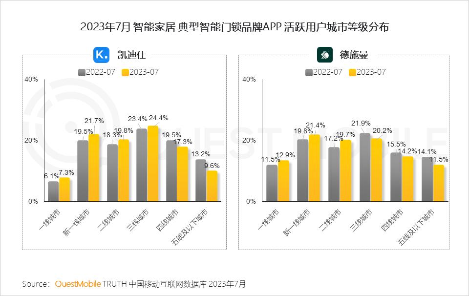 4、智能门锁品牌以年轻人群聚集的发达城市为突破口,瞄准年轻用户对新事物的包容性和对智能门锁的便捷性偏好,加速在一二线城市的用户渗透,扩大整体市场空间