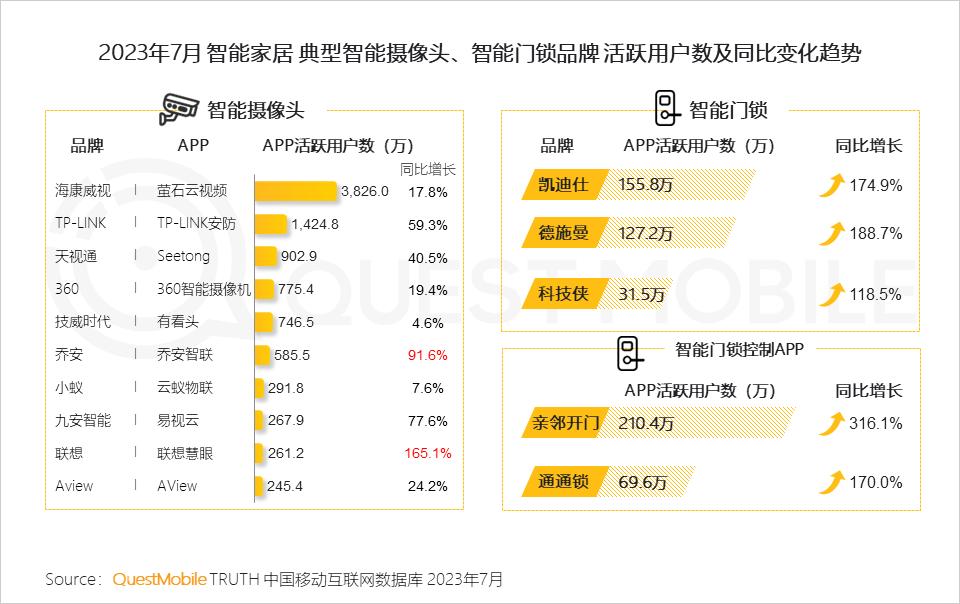 3、此外,家用摄像头、智能门锁的增长既反映了智能家居市场的不断壮大,同时也透露出用户对于家庭安全性的高度重视