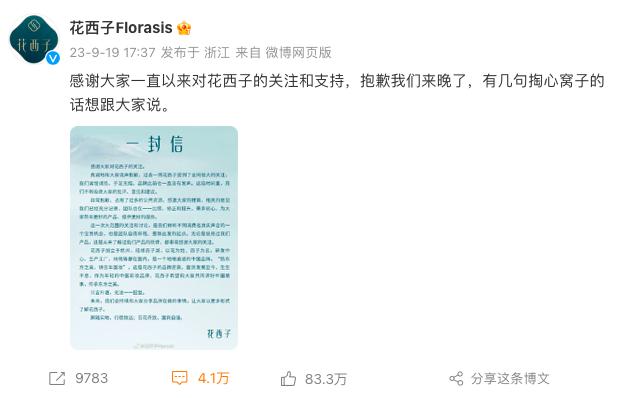 花西子首次发声前后的“拧巴”39小时